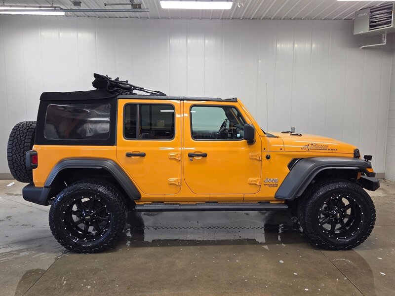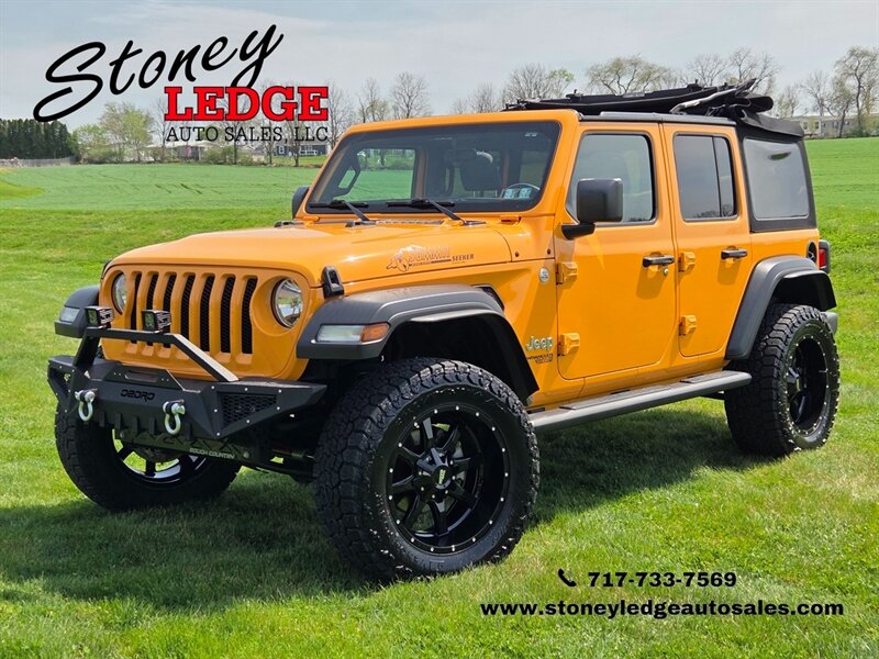 2021 Wrangler Unlimited Sport Summit Seeker in Nacho. This Wrangler is ready to handle what ever Mother Nature throws it's way! It's equipped with a Rough Country suspension lift, 35 inch tires on 20 inch wheels, matching spare, dual steering stabilizer, Off road powder coated front bumper, side steps, Sunrider softtop, and lots more!!! Stop in and see for yourself or check it out on our website www.stoneyledgeautosales.com Please call 717-733-7569 and ask for Randal or Dale with any question.