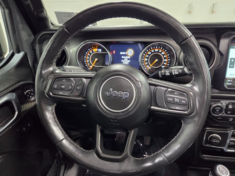 - Sun and Sound PackageIncludes 115-volt auxiliary power outlet, 220-amp alternator, 4G LTE Wi-Fi hot spot, UConnect 4C Nav with 8.4-in. touch screen display, Alpine premium audio system, HD radio, Apple CarPlay, Android Auto, SiriusXM Guardian, SiriusXM satellite radio, Traffic Link and Traffic Plus, dual remote USB charge ports, USB host flip, off-road information pages, rearview auto-dimming mirror, rear window wiper/washer, rear window defroster, removable rear quarter windows, power top quarter window storage bag, sky one-touch power top, console bin task light, air conditioning with automatic temperature control, and air filtering.